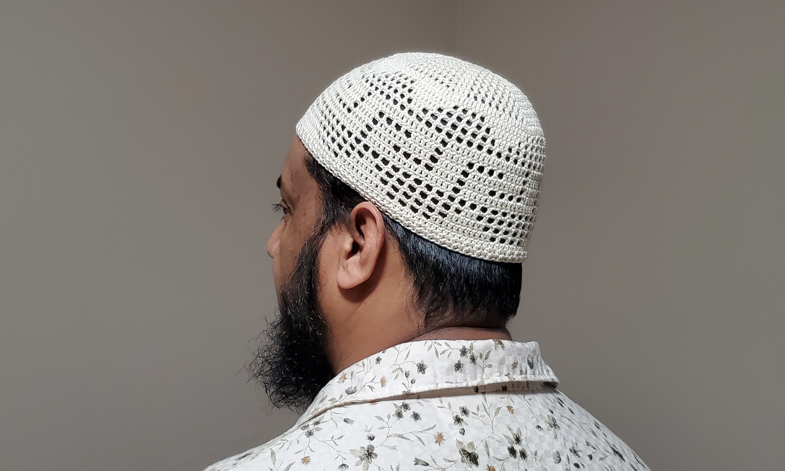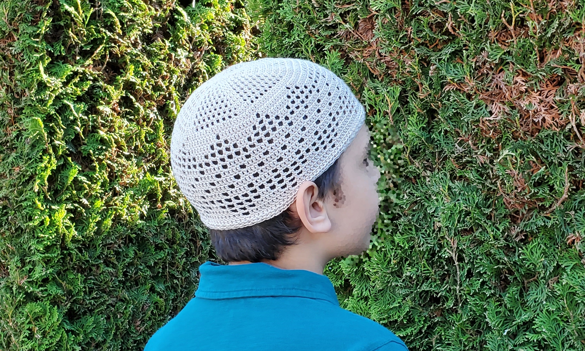 This pattern uses size 10 Crochet Thread, the filet design leaves negative space to display the pattern. Due to the size of the thread, this pattern works up slower than others but leaves a fine feeling kufi that does not feel too thick.